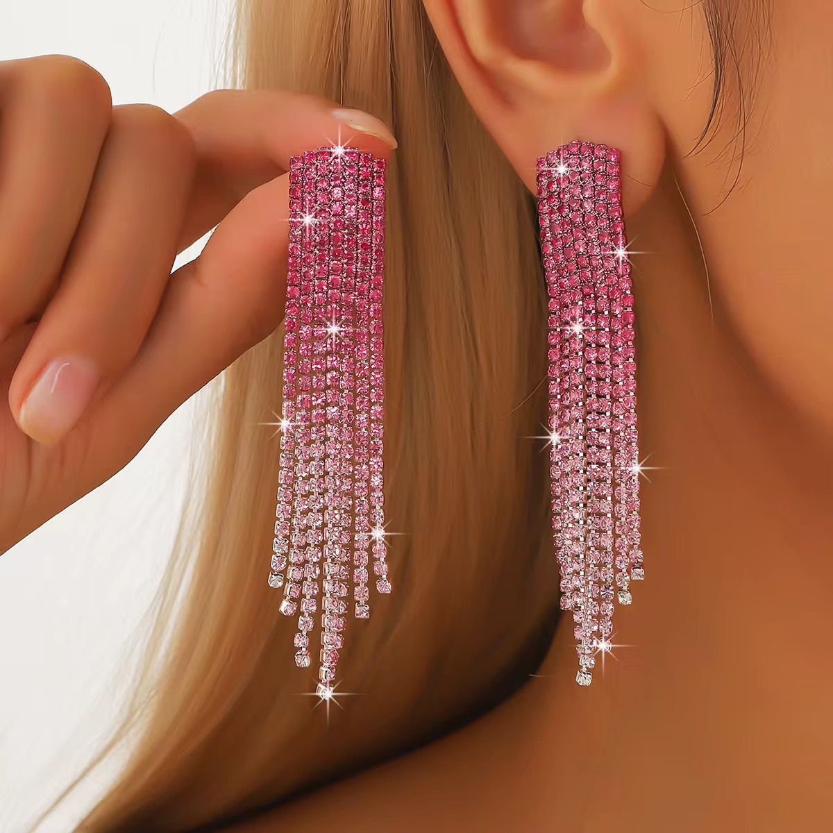 The Gleamfall Ombre Earrings capture the essence of motion and brilliance — a cascade of sparkling crystals that flow effortlessly like a waterfall of light. Each pair features a stunning ombré gradient, transitioning from rich tones to radiant silver, creating a mesmerizing shimmer with every turn.
