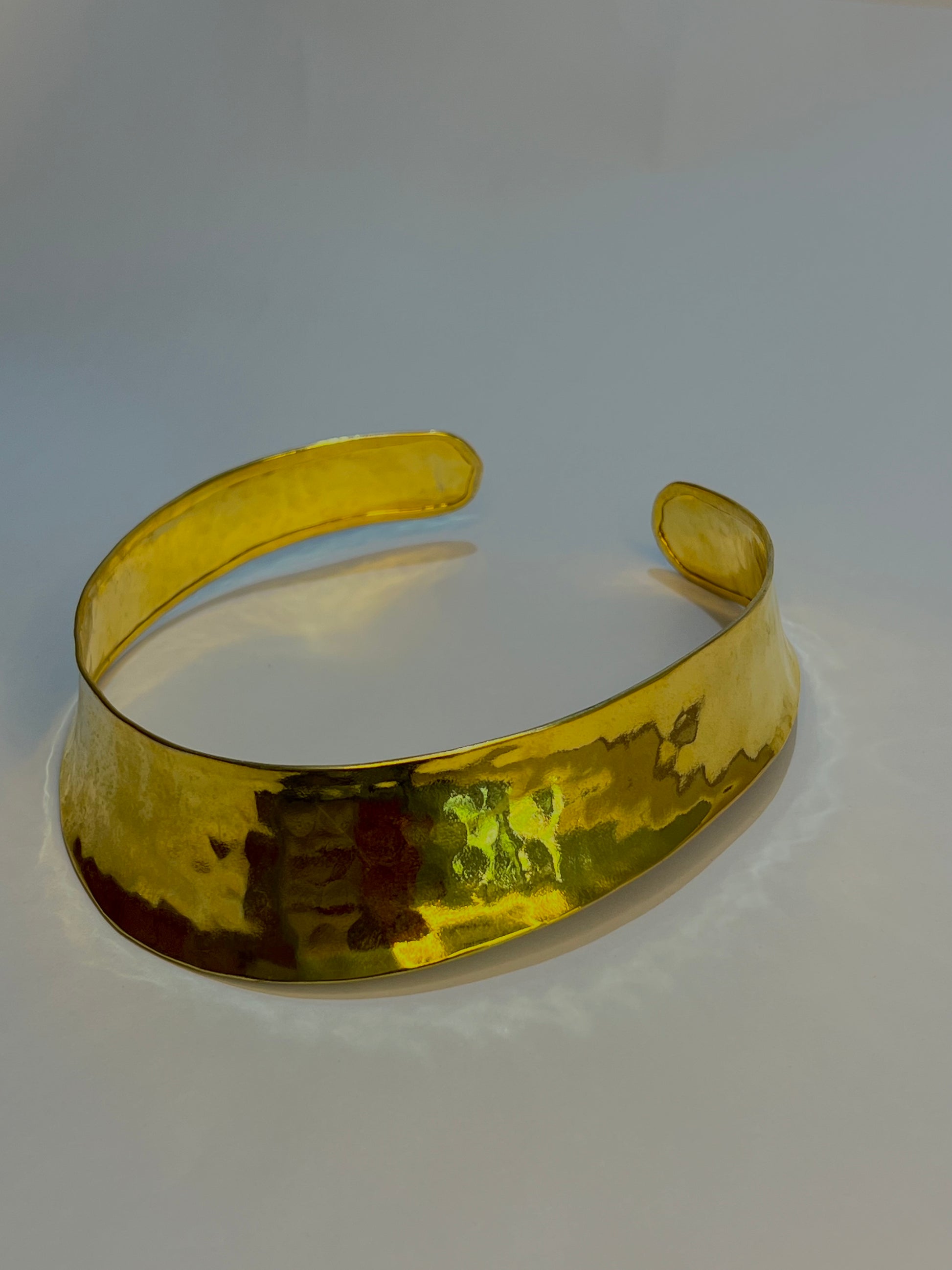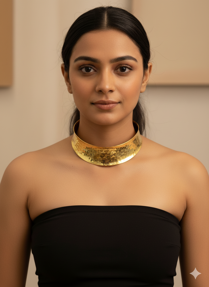 Wear it solo with off-shoulder or strapless outfits for bold minimalism, or layer with fine chains for a textured golden stack. Perfect for both daytime polish and evening glamour.