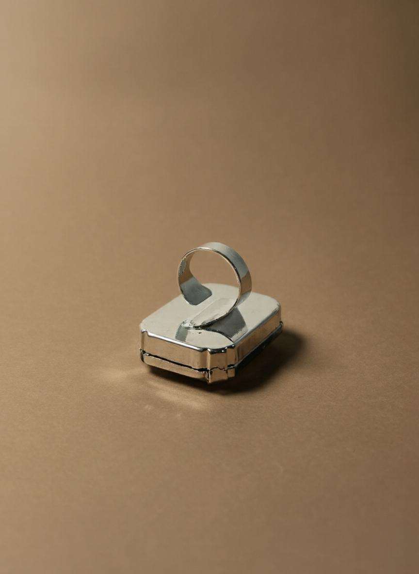 Command the spotlight with the Titania Statement Ring — a daring creation that radiates pure confidence. Set with an oversized, precision-cut crystal, this piece reflects light like a starburst, while its sleek silver-polished band adds a cool, modern edge. Designed for the bold and the unstoppable.